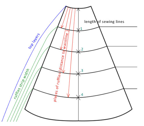 Distance to Waistline from Ruffle 4 (cm)   Width of Ruffle 2 (cm)