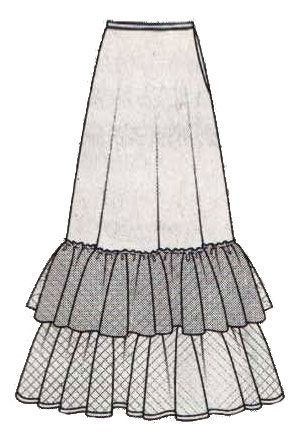 Calculation of ruffle fabric consumption starting from the top of the skirt. Train ruffles are included automatically if there is a train!